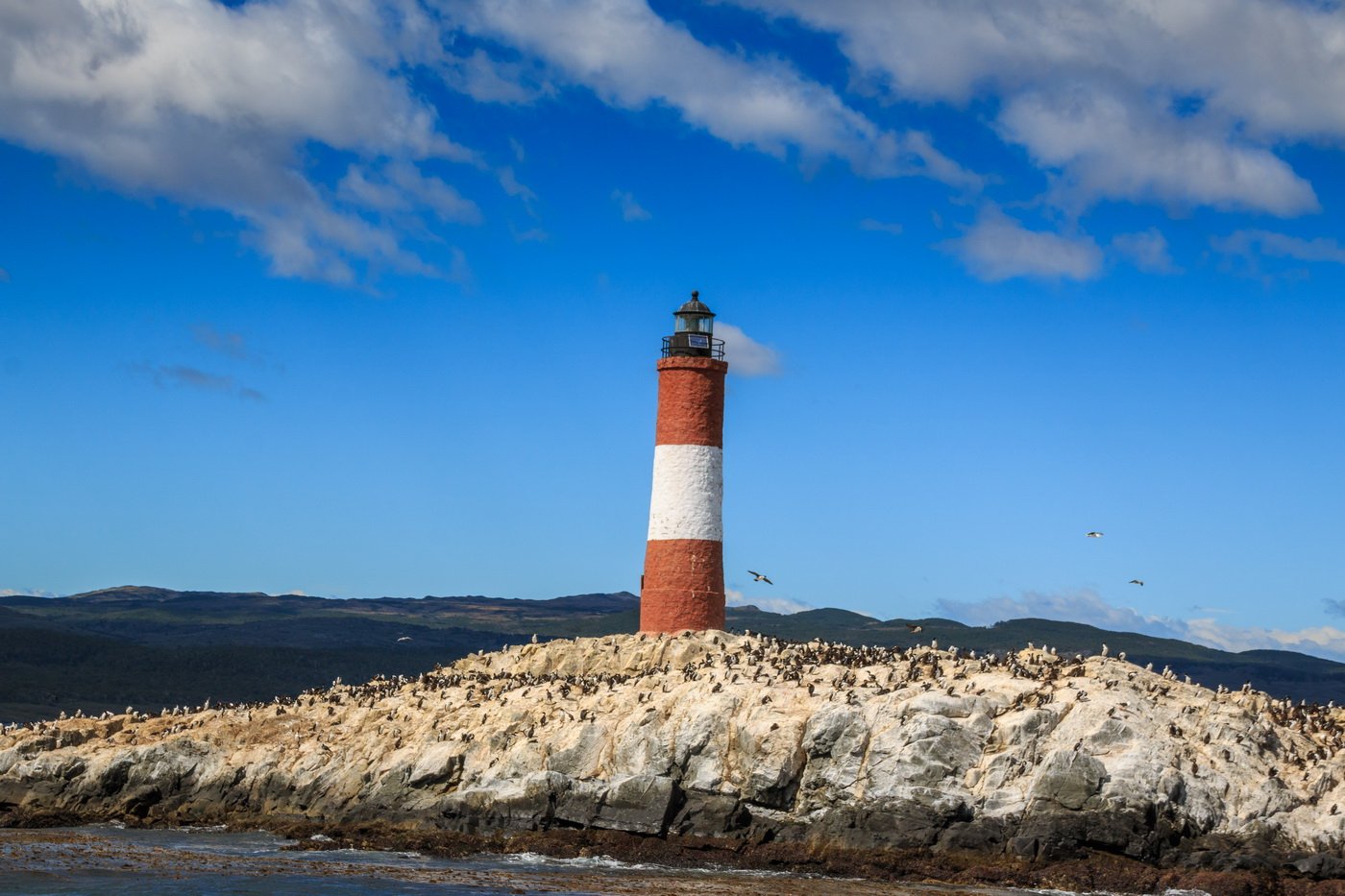 Beagle Channel, Les Eclaireus Lighthouse, Sea Lion and Bird Island from Ushuaia, Tierra del Fuego